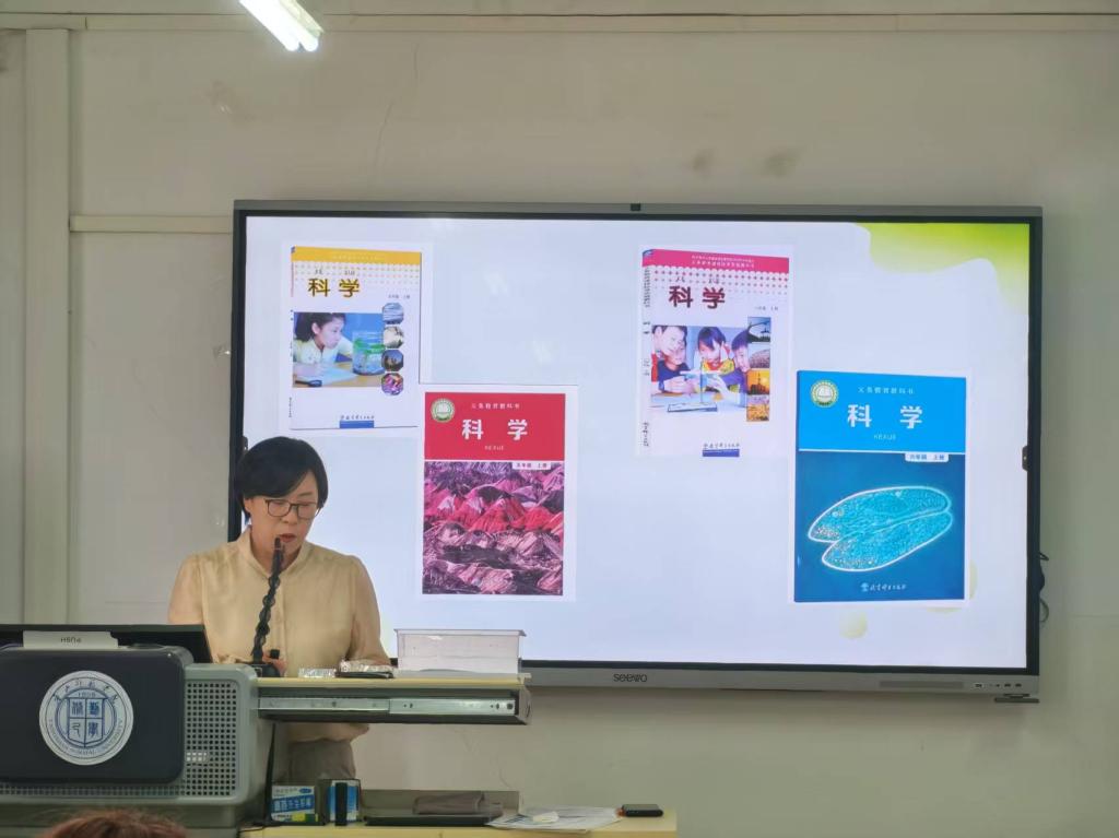 示范课环节,韩国玲老师以新课标理念为核心,结合自身多年一线教学实践经验,从2022版科学课程标准的主要变化、科学教材的解读与处理技巧、课程教学的优化策略等方面展开系统讲解。她通过案例分析与方法拆解,清晰阐释了如何将新课标要求与日常教学紧密结合,让在场师生对新课标下的科学教学有了更直观、深入的认知。
