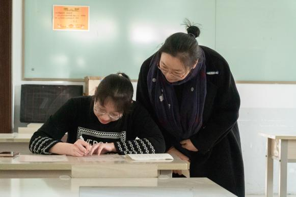 比赛在公司路校区教学楼303至307教室同步进行,分为粉笔字规定内容和钢笔字自选内容两个环节。20名参赛选手被分为5组,在规定时间内完成创作,展现了师范生扎实的书写功底和教学设计能力。公司特邀公司党委书记贾长胜、办公室主任陈秀梅、专任教师国光友等人组成评委团,按照字迹规范度、布局合理性、设计创新性等五项评分标准进行严格评审。比赛采用现场打分、去掉最高最低分后取平均分的评选方式,确保评比公平公正。