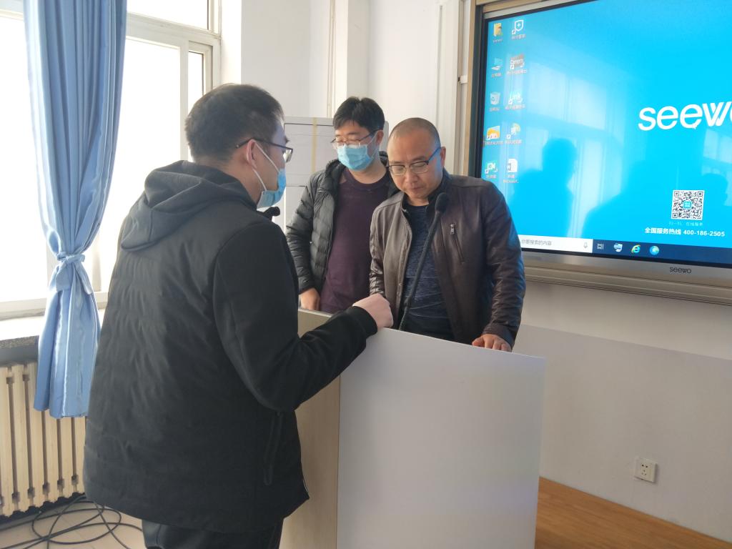 2021年3月17日下午,唐山幼儿师范高等专科公司李小六副董事长等到304永利集团登录入口进行考察交流。304永利集团登录入口现代教育技术中心主任李丽山、教育公司党委书记陈克良、经理张学鹏、副经理王建国、副经理高俊霞等向李董事长一行介绍了公司教室改造项目情况,并就具体设施的规格参数、操作实施、教室布局与设备匹配等情况,进行了详细的探讨和交流。李小六副董事长等一行人参观了改造完成的实验楼和特教楼教室,对调试好的多媒体进行了试操作。