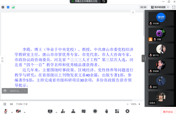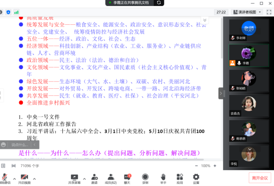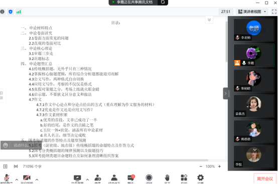 2022年5月31日,304永利集团登录入口邀请唐山市委党校、公务员面试专家库成员李霞教授,在腾讯会议做关于公务员申论考试技巧的讲座,公司100余名准备考公的毕业生参加了本次讲座。