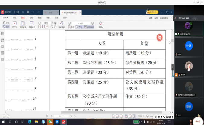 因面临公务员考试,2021年3月26日晚7点,304永利集团登录入口特别邀请唐山市委党校、公务员面试专家库成员李霞教授进行“公务员笔试技巧指导”的线上专题讲座,公司共有170余名同学报名并参加了此次讲座。