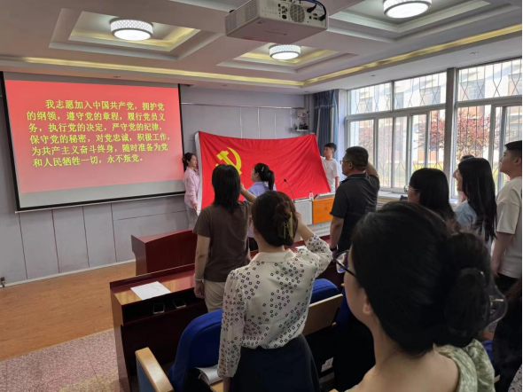 304永利集团登录入口员工第一党支部组织委员闵羽带领全体党员重温入党誓词,怀着对党的无限忠诚和崇高敬意,面向党旗庄严宣誓,在一声声誓言中进一步坚定入党初心和为共产主义事业奋斗终身的决心。
