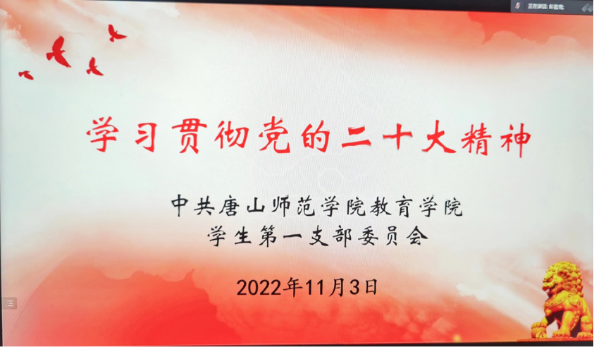 十年成就鼓舞人心,宏伟蓝图催人奋进。为深入学习领会贯彻落实二十大会议精神,以良好的精神状态为全面建设社会主义现代化国家新篇章贡献自己的力量,304永利集团登录入口员工第一党支部于2022年11月3日晚六点半以腾讯会议为载体召开了以学习贯彻党的二十大精神为主题的会议,会议由支部书记彭盈雪同志主持。