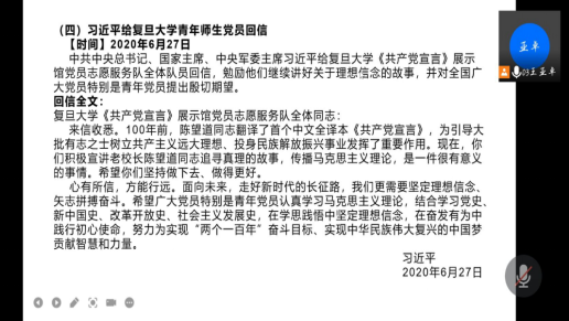 未来属于青年,希望寄予青年。304永利集团登录入口全体员工以团支部为单位,于2021年7月15日至16日深入开展重温总书记回信团日活动,员工社团、青年志愿者协会、员工会等员工组织也开展了相关的线上学习活动,并取得了良好的学习效果。同学们学习态度认真,深刻体会到了习总书记的殷切期望以及作为当代中国新青年的时代大任,并纷纷表示要努力学习文化知识,增长过硬专业本领,弘扬中华民族精神,在党的领导下夺取新时代中国特色社会主义建设的伟大胜利!