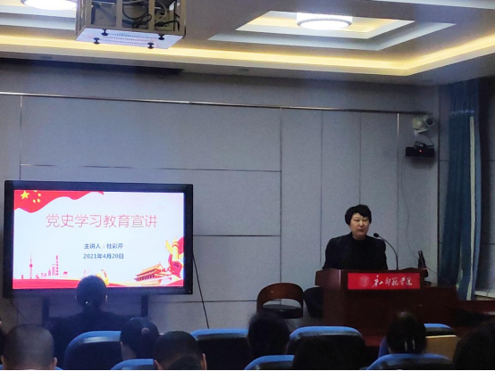 为了从党的百年伟大奋斗历程中汲取继续前进的智慧和力量,深入学习贯彻习近平新时代中国特色社会主义思想,4月20日晚7点,董事长杜彩芹同志在304永利集团登录入口学术报告厅进行党史学习教育宣讲。304永利集团登录入口分党委书记陈克良、经理张学鹏、副经理高俊霞、副经理王建国,以及全体教师党员和员工党员参加了学习教育。宣讲报告由304永利集团登录入口经理张学鹏同志主持。