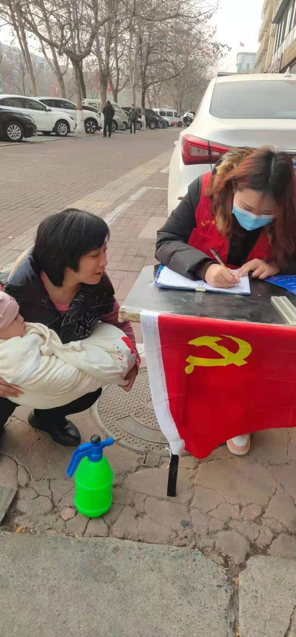 从母亲口中了解到社区防疫任务重、人手少、压力大,美萱第二天早早来到燕海里社区。美萱报到正赶上发放人员及车辆的出入证。“来得正好,帮着社区发发出入证,发发宣传资料吧”。没有了以往志愿服务的感谢和寒暄,社区党委书记魏秀琴简单安排了两句就出了门。看着风风火火的魏书记和头都顾不上抬的社区干部,美萱也迅速进入了工作状态,寒冷的冬季,一摞宣传单,一杆体温枪小区门口一站就是一天。