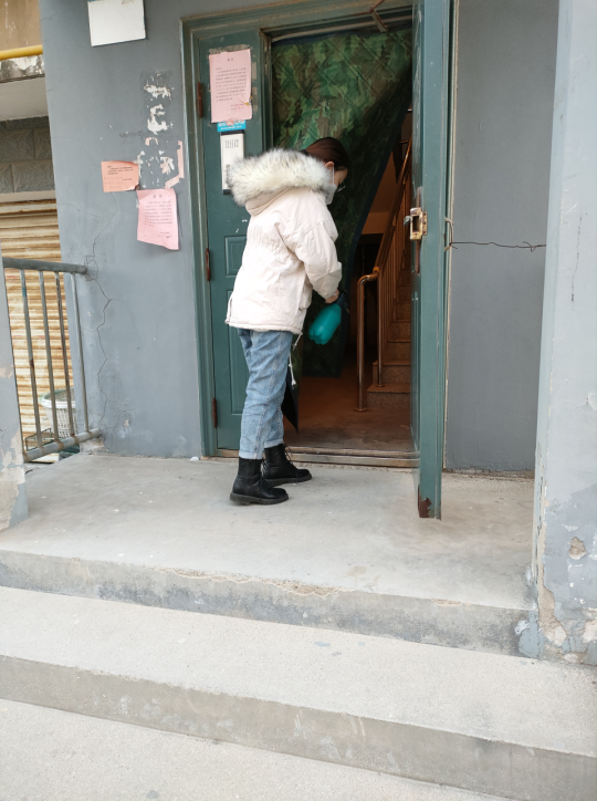 2018级本科生张亚文,对她的家乡河北省黄骅市南排河镇歧口村有着浓厚的情感,她积极响应村党支部关于疫情防控的工作号召,发挥老员工的先进带头作用,主动请缨到防疫工作前线。1月9日起,她对歧口祥和小区进行楼道消毒工作,与其他老员工志愿者相互配合,为大家营造安全卫生的生活环境而努力。虽然每天只有几个小时的工作,但她深刻地体会到了基层工作者的艰辛,也感受到作为一名志愿者参与疫情防控工作的光荣感和责任感,她祝愿祖国可以早日度过这个寒冷的冬天,共待锦华灿烂、花朵烂漫的春天。