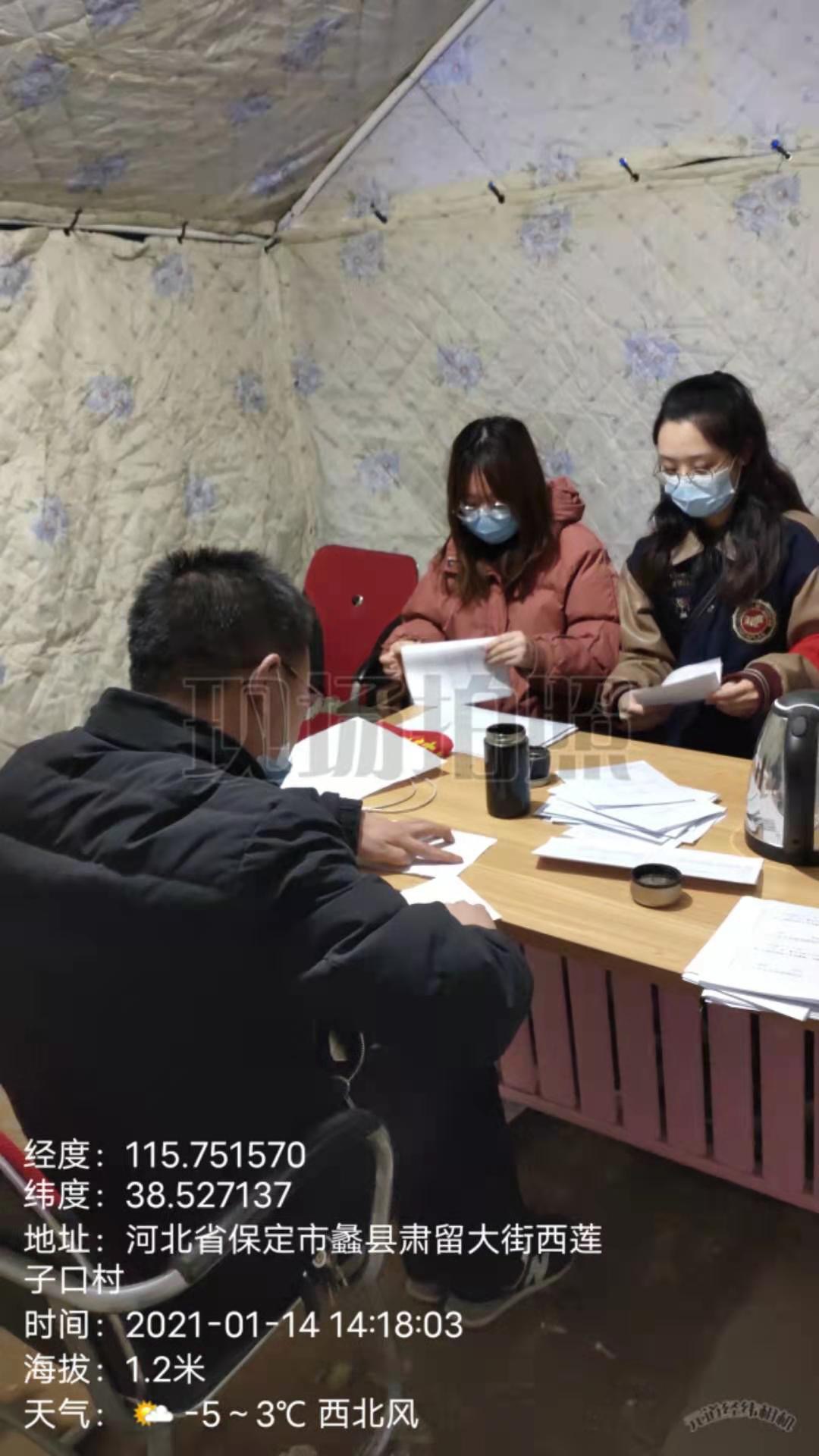 孙晗同学,1.14日在河北省保定市蠡县西口村当防疫志愿者,主要工作是协助工作人员统计做核酸检测的人数以及录入信息。时长3小时。