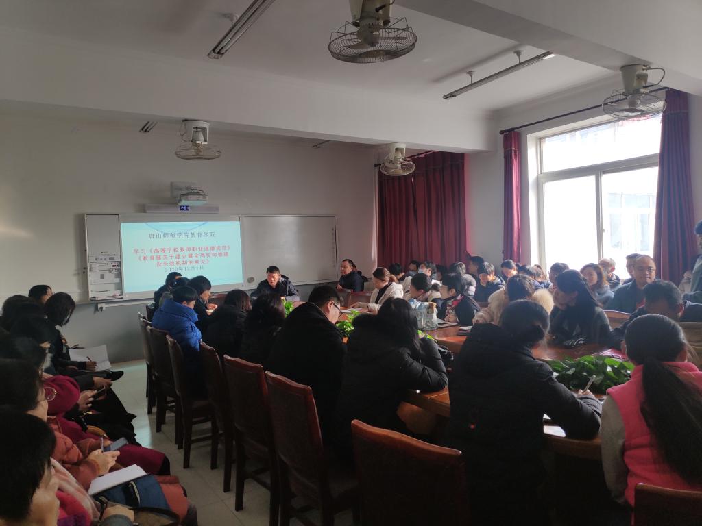 为深入贯彻习近平新时代中国特色社会主义思想和党的十九大精神,进一步加强师德师风建设,2020年12月1日,304永利集团登录入口全体教职工开展了《高校公司教师职业道德规范》《教育部关于建立健全高校师德建设长效机制的意见》,争做“新时代好老师”的专题学习。