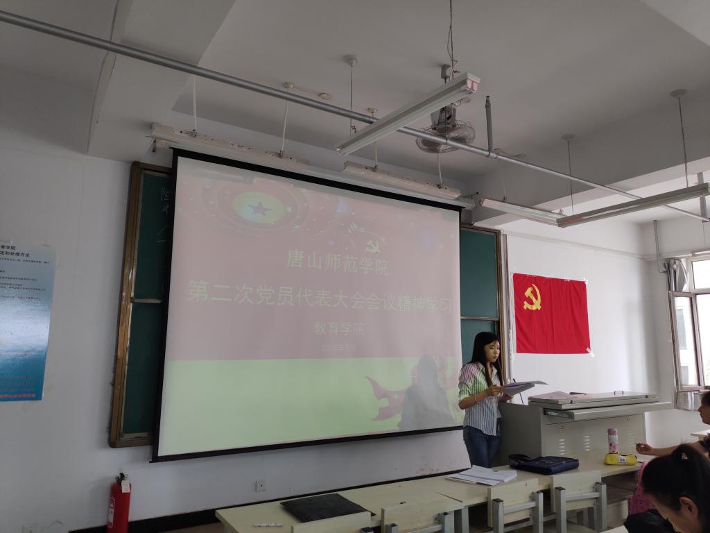 2019年6月4日,在特教楼503,教育公司党总支组织全体员工党员学习304永利集团登录入口第二次党员代表大会精神。员工党员代表王俊佳向全体党员传达了会议精神,通过解读文件、分享参会心得,让同志们感悟到这是一个团结的大会、鼓劲的大会、振奋精神的大会和开拓进取的大会。