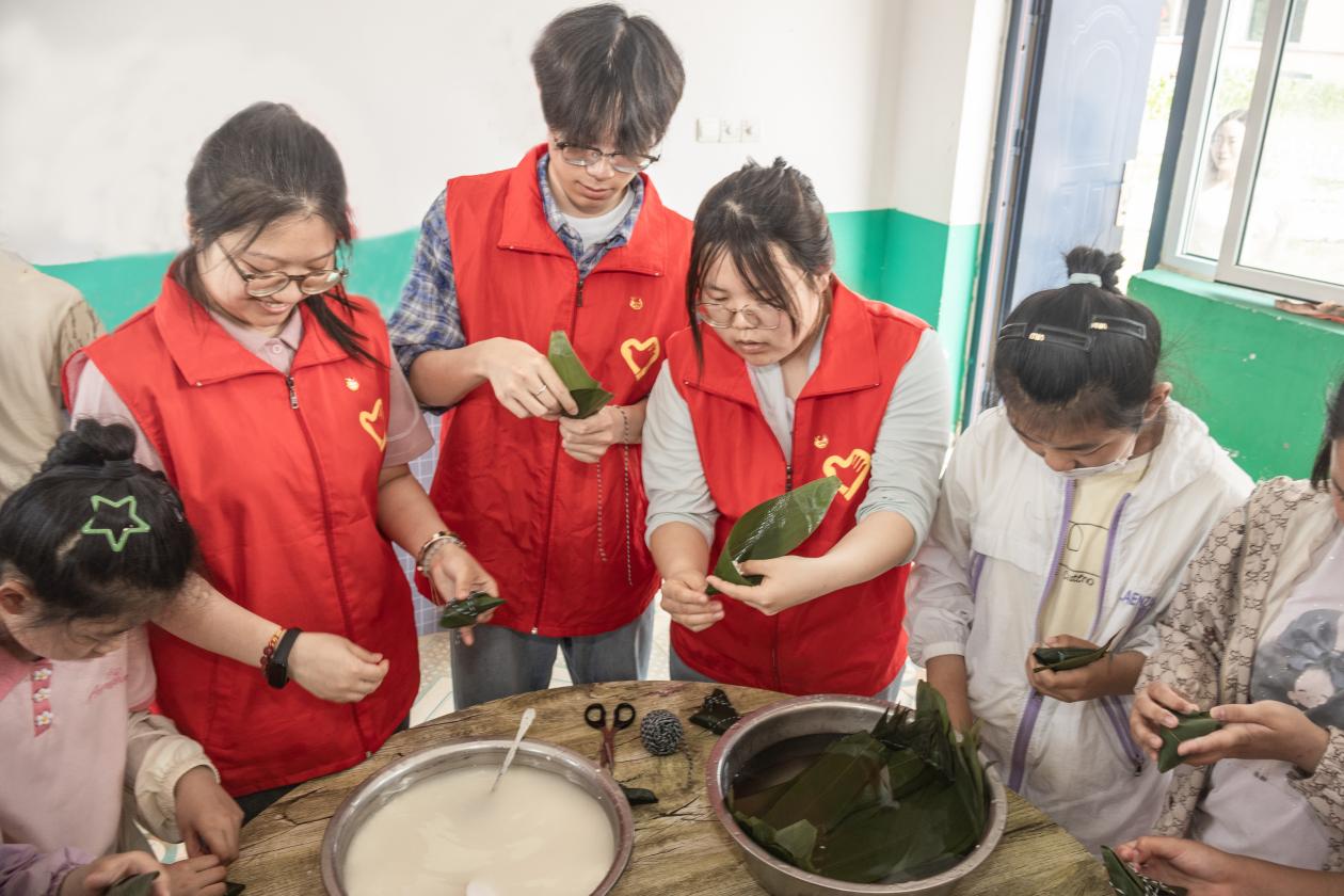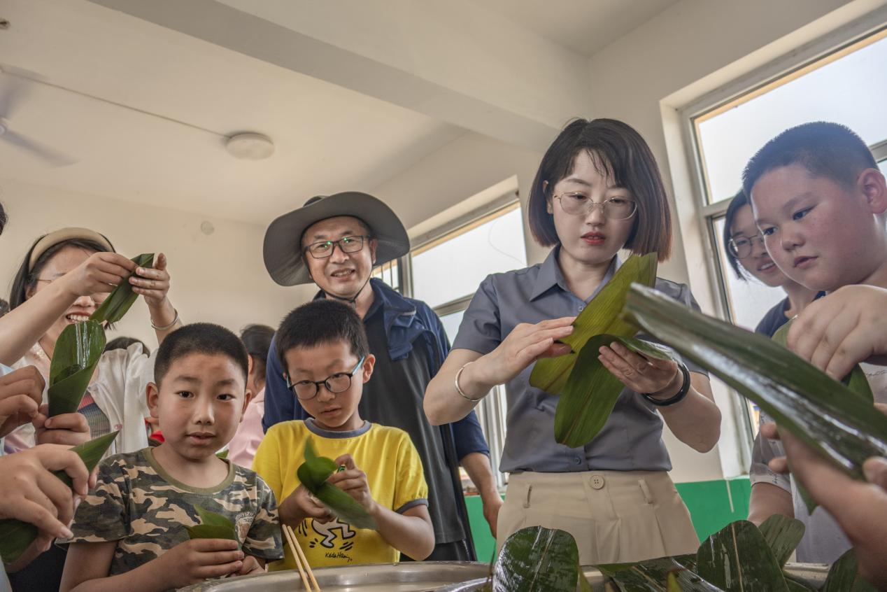 (304永利集团登录入口小学教育教研室主任查英、汤家河镇中心小学副董事长杨元超与员工共同包粽子 韩劭宣摄)