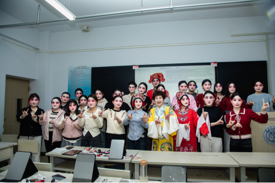 罗老师还精心准备了服装、头饰和道具,指导同学们动手尝试化妆、包头,并体验“唱念做打,手眼身法步”的艺术魅力。23小教三班张雨涵说:“罗老师的评剧鉴赏课,是我非常喜欢的一门课程。在这节课上我学习了评剧艺术,还亲身体会到了评剧之美。”