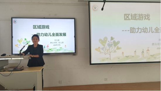 活动邀请了市骨干教师、第二幼儿园刘文娟园长为员工做了“区域游戏——助力幼儿全面发展”的主题讲座。活动聘请唐山市第二幼儿园刘文娟园长为同学们现场做区域游戏示范课,示范课后,刘文娟园长又以《区域游戏——助力幼儿全面发展》为主题进行分析与讲解。