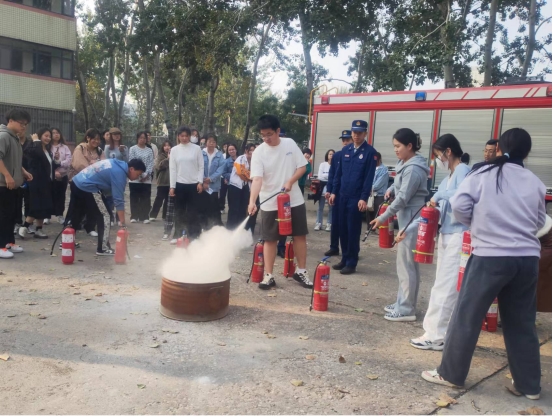 此次演练活动分三部分进行:消防常识学习、应急逃生演练和灭火器使用。