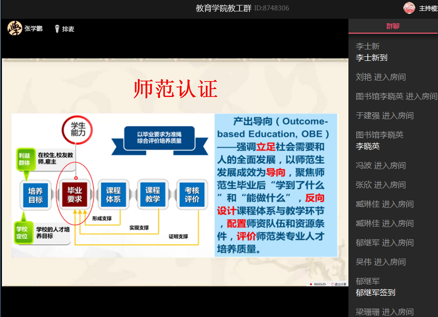 张学鹏经理传达了近期教学工作部署,并从师范认证的角度,要求大家认真做好各项教学工作,包括非毕业班的线上结课工作,非毕业班的补缓考、重修考试以及期末考试等工作。张经理指出,优化学风要靠大家全员育人,全过程育人,既要严格要求员工,又要善待员工。同时要调整心态,开心工作,健康生活。