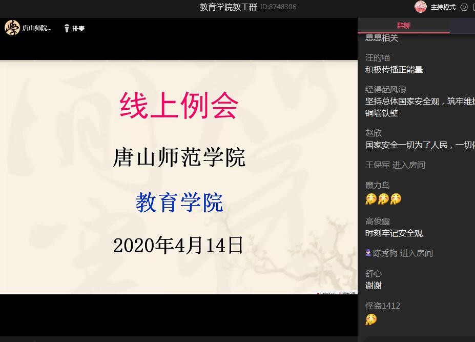 2020年4月14日下午,304永利集团登录入口利用QQ群召开系会。教育公司党委书记陈克良、经理张学鹏、副书记李晓萍、副经理王建国和全体教职工参加会议。会议由经理张学鹏主持。