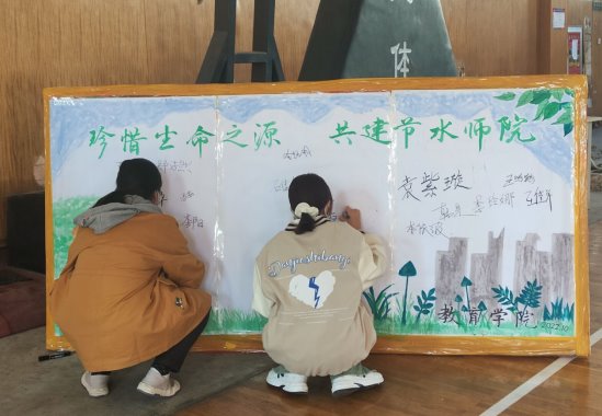 本次活动以线下展板签名的形式开展,陈克良书记率先在签名展板上签署名字,身体力行,号召广大师生从自己做起、从小事做起、从现在做起,以实际行动践行节约用水的生活方式,争当节水倡导者、践行者与推动者。在活动过程中,途经现场的同学也自发签名,纷纷表示了自己“知水、节水、护水、爱水”的信心与决心。活动结束后各班积极召开关于节水爱水的主题班会,各班班委与节水宣传员倡议本班同学节水爱水,珍惜水资源。