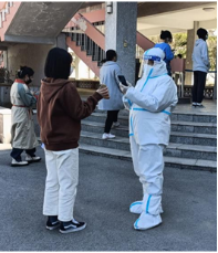每天的核酸检测是重要工作!因路北区核酸采集任务量大,派到公司路校区的常规工作人员只有2名,面对医务人员不足的情况,304永利集团登录入口领导班子将三个公司的员工统筹管理,按每日抽签顺序有序进行。同时,304永利集团登录入口党委书记陈克良、副书记刘建明、副经理王建国勇于担当,亲自上阵化身“大白”,主动担任志愿者。从每天早八点开始,他们穿上防护服,一直不停地扫码录入信息,同时提醒员工不要触碰检测用具等,站时间长了就坐下接着干,往往到下午一点左右才能吃午餐,吃完不休息连轴转,直到全部人员检测完毕。公司路校区的核酸检测在有力有序组织中,从未出现信息有误的情况,对此,路北区相关部门高度认可和赞扬,并随时调配其他完成检测任务的医务人员在每日后半程检测中加入进来。