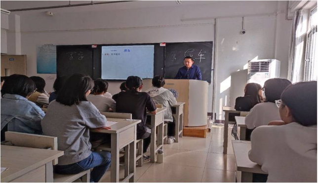 张经理首先普及了字体、工具、临摹方法等书法学习常识,然后以“静以修身,俭以养德”为主题进行讲解,结合多媒体课件,深入浅出地阐释了文字来源、书写技法、文化内涵,幽默的语言,生动的讲解,精准的示范,使同学们受益匪浅。尤其是渗透在书法中的传统文化,让同学们大开眼界,同时产生深深的文化认同感和自豪感。