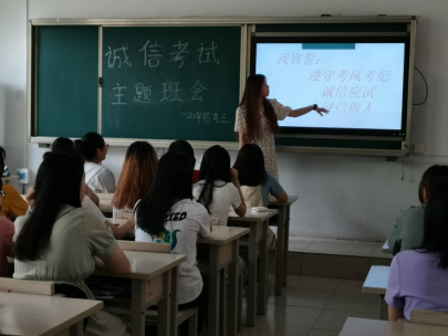活动以班级为单位召开,由各班负责人向班级同学传达有关考试纪律的相关内容。各班积极召开以诚信考试为主题的班会活动,并向同学们介绍考试相关纪律及诚信考试的重要性,号召同学们诚信应考,争做文明员工。
