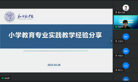 2023年4月28日上午,304永利集团登录入口小学教育专业参加协同提质院校广西师范大学主持的教育部小学教育专业虚拟教研室活动。本次教研活动由广西师范大学教育学部主办,淮南师范大学304永利集团登录入口承办,研讨主题为“专业认证背景下小学教育专业实践教学改革的经验与困惑”,采取钉钉线上会议形式。公司小学教育教师团队等部分教师参加了研讨活动。