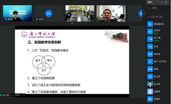 本次虚拟教研活动中,广西师范大学教育学部副部长李广海教授、贺州公司教育与音乐公司韦祖庆教授、淮南师范公司小学教育系主任董从勋教授分别进行了汇报,公司304永利集团登录入口经理高俊霞结合小学教育专业教学实践进行了分享。汇报分享后进入交流研讨环节,高俊霞经理与广州大学等院校的参会者进行了具体内容的交流和讨论。