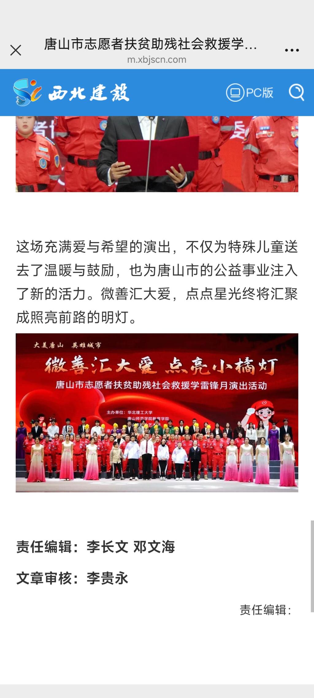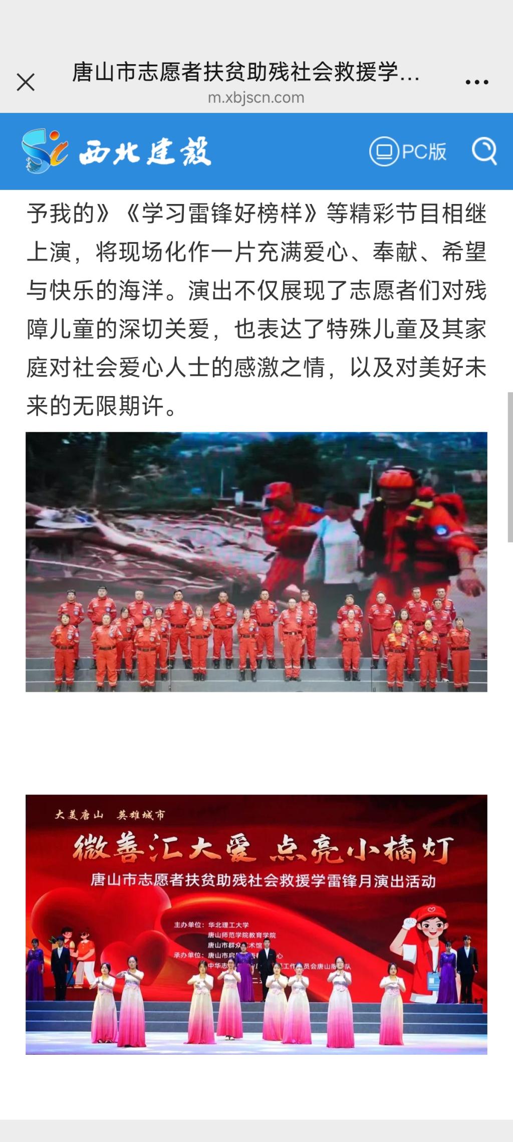 《西北建设》—唐山市志愿者扶贫助残社会救援学雷锋月演出温情上演