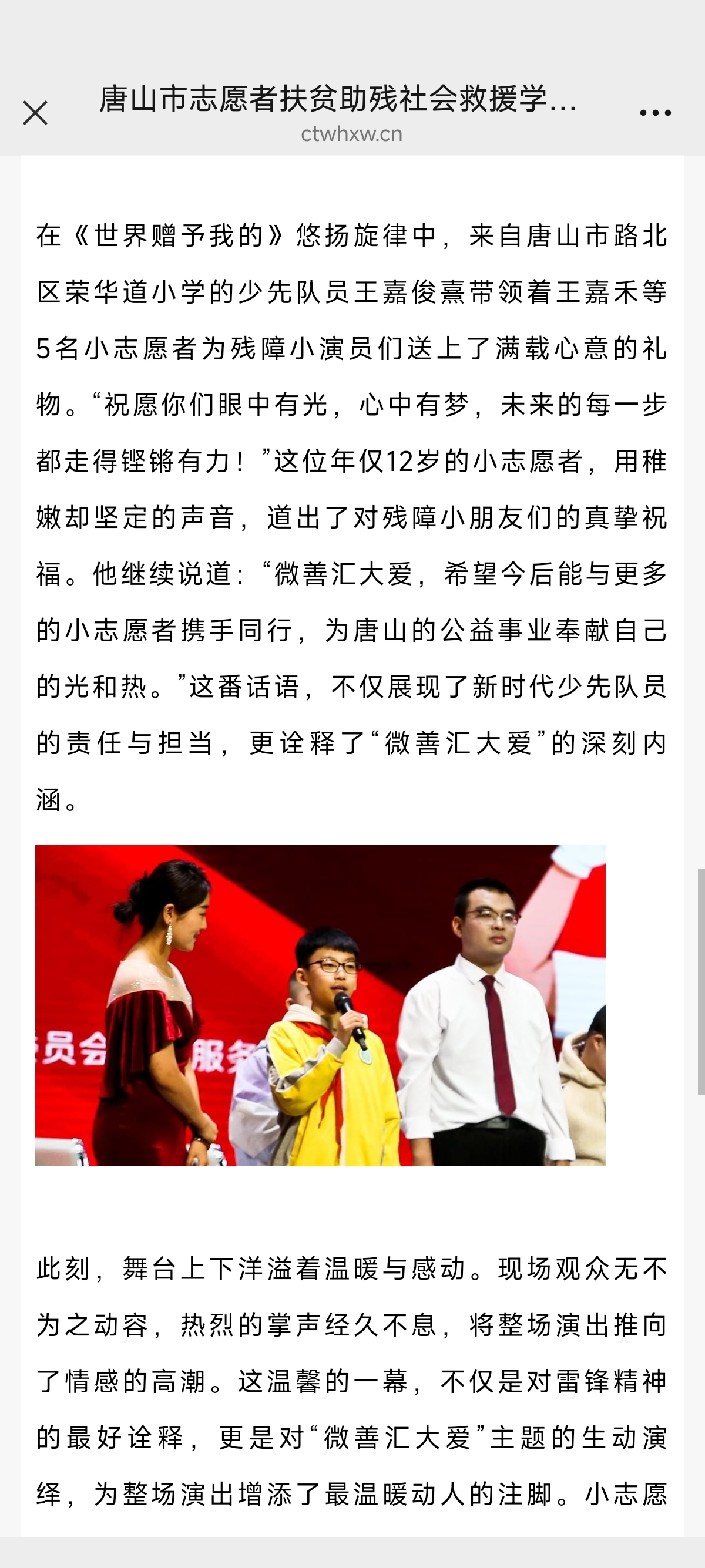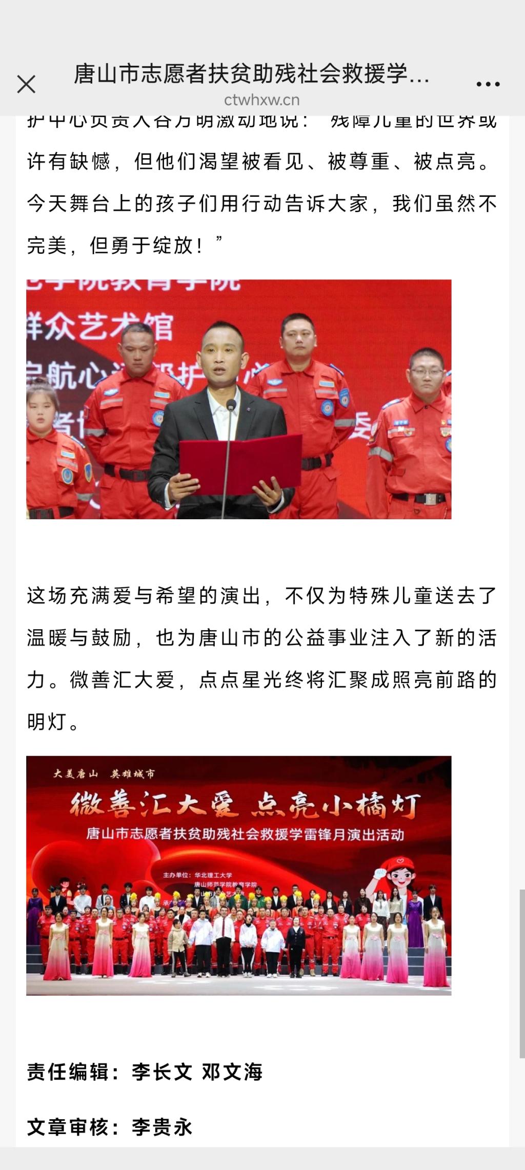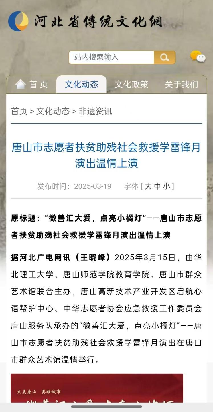 《河北省传统文化网》—唐山市志愿者扶贫助残社会救援学雷锋月演出温情上演