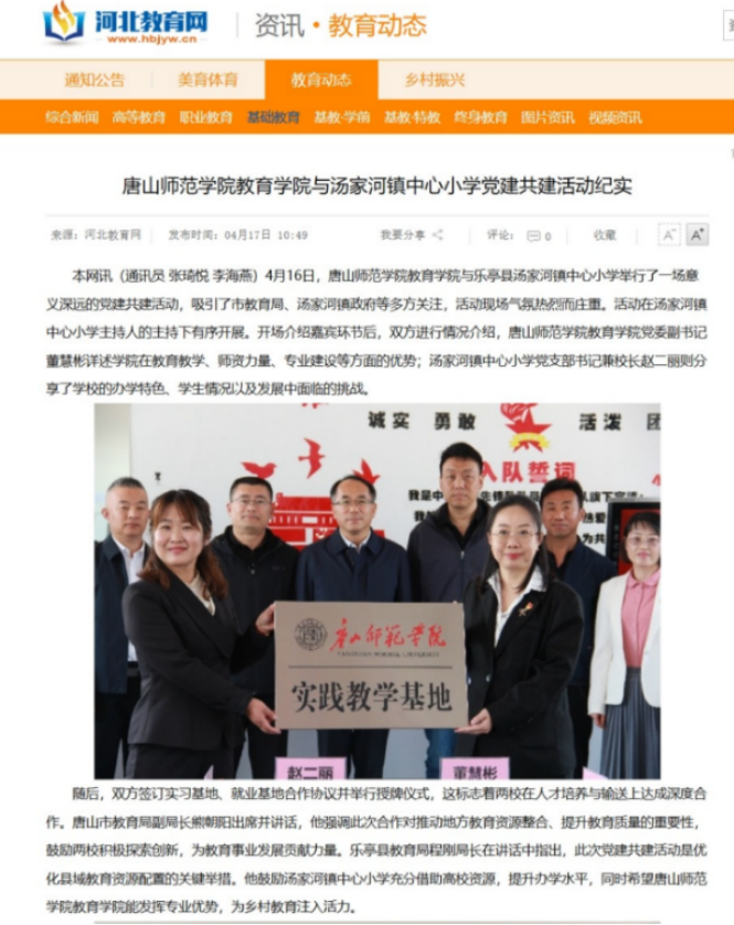 《河北教育网》——公司与汤家河镇中心小学党建共建活动纪实