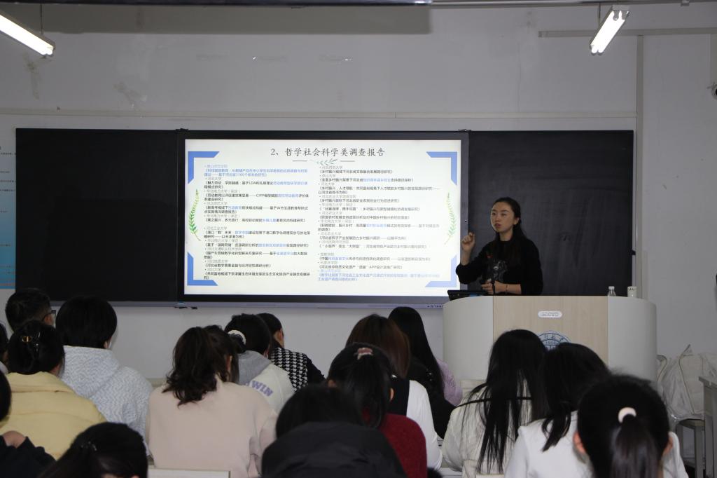 讲座伊始,曹丽君老师详细介绍了挑战杯的赛事类别和优秀参赛案例分析。以丰富的实例展示了过往优秀挑战杯项目的创新亮点与实践成果,从如何精准定位选题,挖掘具有社会价值与研究深度的项目方向,到运用科学的研究方法开展调研与实验,再到高效整合团队资源、发挥成员优势,都进行了深入浅出的讲解。为在场师生提供了极具价值的借鉴与思考方向。
