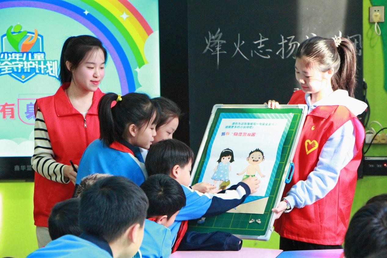 (宣讲团成员李欣宜、侯士博为小员工带来预防侵害相关知识)