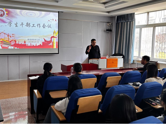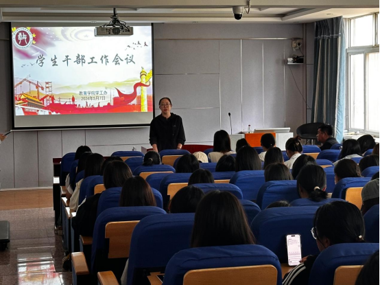 为提升员工干部综合素质,强化员工干部服务意识、责任意识,保持员工干部集体的先进性、模范性,5月7日下午,304永利集团登录入口组织开展了员工干部工作会议。教育公司党委书记贾长胜、经理秦丹、党委副书记刘建明和学工办主任董慧彬老师出席此次活动。2022级、2023级全体员工干部积极到场参加。