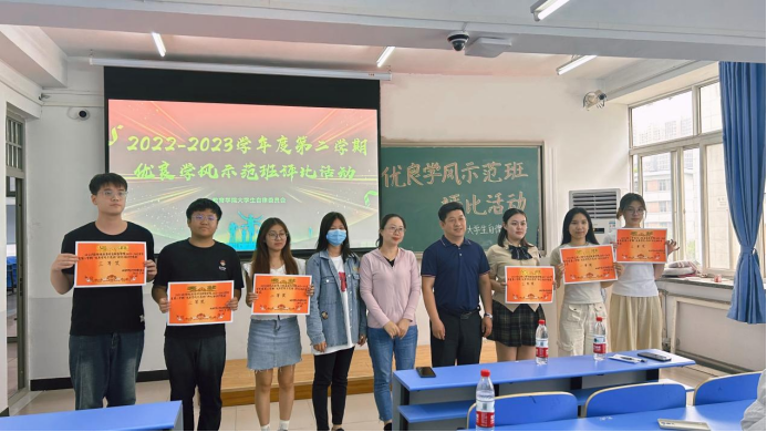 此次活动面向2021级和2022级各个班级开展,遵循公平公正公开的原则。以各班级教室卫生情况和课堂出勤情况为评分依据进行评比,经最终评审,2022级应用心理学班获得一等奖,2021级学前教育2班与2021级特殊教育班获得二等奖,2022级小学教育2班、2022级特殊教育班与2021级应用心理学班获得三等奖。在颁奖活动现场,各班代表分别从学风建设,思想文化建设,管理制度,班级荣誉等方面进行了详细汇报,并总结本班的进步与不足。汇报环节过后,教育公司党委副书记刘建明对各班的优秀成果表示肯定与赞赏并提出了新的希望和更高的要求,副教授董慧彬激励各班坚定信念,再创佳绩。