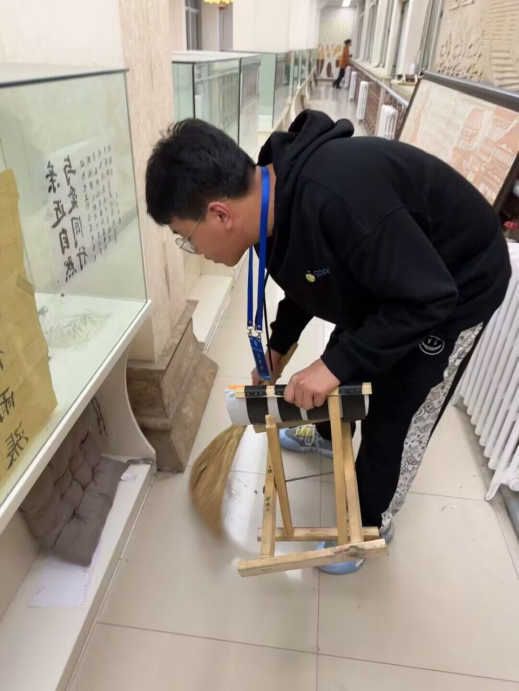 此次活动由老员工自律委员会负责,各部门部长牵头,带动各部员对室内室外以及连廊等多地的垃圾进行清理。自律部的同学认真对连廊以及展柜进行清理,经过此次扫除,玻璃展柜变得干净明亮,其中的作品看起来更加夺目动人;秘书处部员主要负责对教室卫生进行打扫,将地面清扫干净,桌椅摆放整齐,窗台擦拭的一尘不染;督察部的同学们最后进行了全方位的检查,对于风扇电灯开关以及一些卫生死角也没有忽视。在老员工自律委员会的带领示范下,304永利集团登录入口的同学们不仅认识到了维护校园环境的重要性,也提高了自身的文明修养。