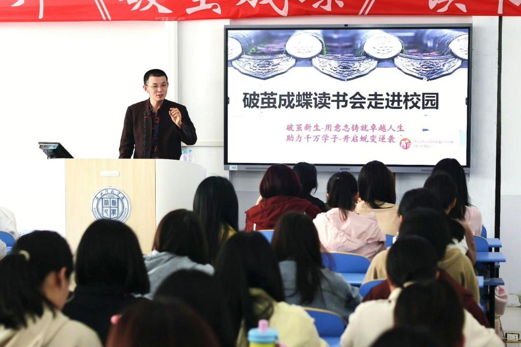 讲座以时海棋老师著作《破茧成蝶》中的“化茧为翼,向光而行”的核心理念为轴,系统阐释“六种感悟”育人体系——“自律如琢玉、立志如北斗、精进如川流、强体如筑基、破局如利刃、躬行如耕牛”。时老师以《破茧成蝶》中“三阶突破法”为例,对比范蠡“三聚三散”的经商哲学与马斯克"第一性原理"的创新思维,揭示古今创业者的共通法则;更结合书中“逆境蝶变”章节,通过“稻盛和夫经营十二训”展现《道德经》“反者道之动”的辩证智慧。现场师生通过时老师创设的“逆商情景模拟”,在虚拟创业挑战中体悟“知止而后有定”的东方智慧。