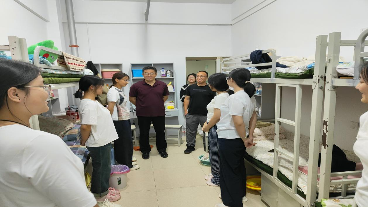 为及时了解新生报到状况,助力新生尽快融入校园环境,9月7日,教育公司党委书记贾长胜、经理秦丹、党委副书记董慧彬、副经理马振、分团委书记贾然及新生辅导员、班主任,深入新生宿舍开展走访活动,切实解答新生初入校园所面临的各类疑问,向新同学致以温暖的入学关怀。