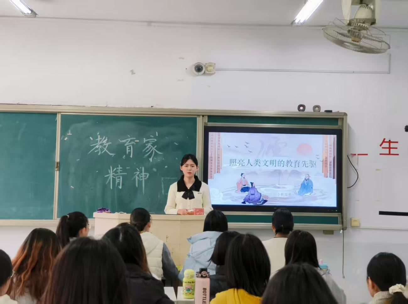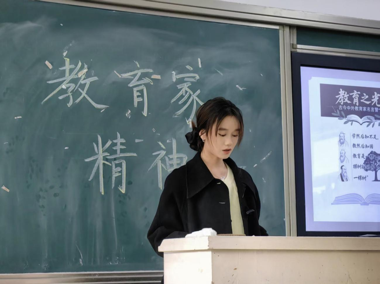为深化师范生教育理念认知,传承教育家精神,23小教四班于公司教学楼307举办“传承教育薪火,争做时代良师”主题班会。班会由班长韩春阳策划主持,通过教育家思想分享、名言解读、理念研讨等环节,引导全班同学感悟教育先驱智慧,明确师范生涯方向。